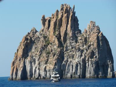 Also morgens mit dem Bus nach Milazzo. Dabei vorbei an der Meeresenge von Messina. Aber weil es etwas diesig ist hat man das italienische Festland zwar gesehen, aber war nicht so berauschend. Dann einschiffen in Milazzo und dann vorbei nach Norden an den ersten Inseln. Alle Inseln ja vulkanischen Ursprungs. Stop zum Baden gab's dann auf Panarea. Angeblich eine prima Promiinsel. Uns hat es dort getaugt weil man toll schnorcheln kann. Da sieht man jede Menge Fische. Und Sachen, die wir nicht kennen: ![]() Panarea hat auch noch ein paar kleine Nachbarinseln, ist wohl ein großer explodierter Vulkan. Die Überreste sehen dann so aus: ![]() Nach Aufenthalt dort ging's weiter nach Stromboli, der einzige dauerhafte Vulkan auf den Inseln. Und schon bei der Anfahrt hat man die Aktivitäten als Rauchwolken gut sehen können. Stromboli am Abend ![]() Dort auf den Lavastränden noch mal schwimmen, "leichtes Abendessen" auf dem Schiff und dann Fahrt in den Sonnenuntergang. Sonnenuntergang bei Stromboli ![]() Stromboli bei Nacht ![]() Und dann Nachts bei warmen Temperaturen und sternenklarem Himmel - oh wie romantisch - wieder zurück. Und im Hotel gab's dann sogar noch Mitternachtssnack für uns. ... link (3 Kommentare) ... comment ... older stories
