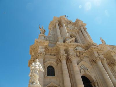 Nach einer ca. zwei stündigen Fahrt besichtigten wir den Parco Archeologico mit Theater und ein Amphitheater und Höhlen mit einem Guide. Teatro ![]() Die Führung war auf Italienisch und auf Deutsch wobei der Italienische Text ungefähr dreimal so lang war wie der Deutsche. Die Besichtigung war sehr schön bis sauf die Tatsache, dass wir an die Gruppe ziemlich gebunden waren und wir nicht längere Zeit noch mehr anzuschauen. Noch etwas was in diesem Programmpunkt enthalten war, ist das Ohr des Dionysios (große Höhle). Hier war die Akustik sehr gut und es war an diesem Tag so ziemlich der kühlste Ort. Dom ![]() Als nächstes gings zum Dom wo wir die Geschichte der Santa Lucia erfuhren. In einem kleinen Glaskasten konnten wir ihren linken Ellenbogen sehen. Der Rest ihres Körpers, so erfuhren wir, liegt in Venedig begraben. Kirche Santa Lucia ![]() Die Kirche Santa Lucia liegt neben dem Dom an einem sehr schönen Platz. Domplatz ![]() Innen drin ist sie sehr schön in weiß gehalten und man kann ein Bild von der Ermordung der Lucia sehen (das Messer oder Schwert durch den Hals). Danach haben wir uns die Süßwasserquelle von Syracusa direkt vom Meer angesehen. Dies war der letzte Punkt unserer Führung und von da an hatten wir 2h 30min Freizeit bis zur Heimfahrt. Also gingen wir erstmal Essen... Arancini ![]() Bei unserem Mittagessen mussten wir die Spezialität in Syracus probieren, die Arancini, da diese uns auch sehr empfohlen wurden. Der Pyramiden -oder Orangenförmige 'Snack' ist Reis der ummandelt ist von Teig. Wir haben es mit Ragu im Reis gegessen. Danach gab es für jeden noch ein leckeres Granite, welche hier super schmeckten. Einfach total echt! Radkunst ![]() Beim anschließendem schlendern durch die Gassen entdeckten wir vor einem süßem Laden in der Altstadt dieses Kreative Fahrrad. Isola Bella im Abendlicht ![]() Auf der Heimfahrt konnten wir die Isola Bella noch einmal betrachten und wir hatten von oben eine himmlische Sicht auf das Meer. ... link (0 Kommentare) ... comment ... older stories